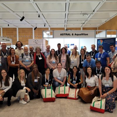 ASTRAL & AquaVitae teams in front of their shared booth at Europe Aquaculture, Rimini, September 2022 The Belém Statement