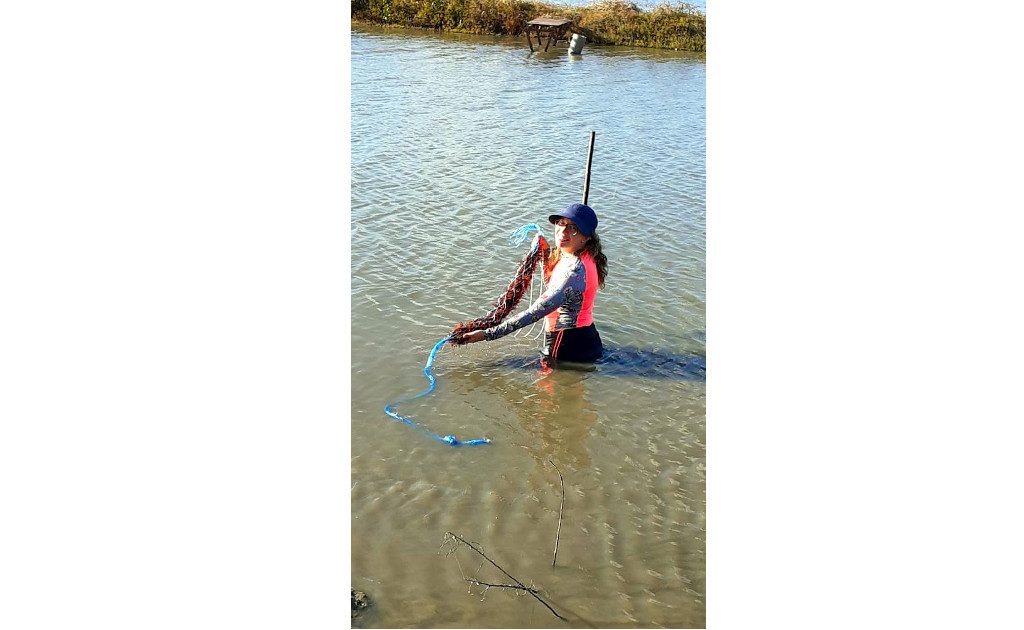 Introduction of macroalgae in Primar’s ponds, for AquaVitae work on pond-based IMTA. Photo credit: Marcia Kafensztok.