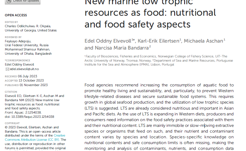 New marine low trophic resources as food: nutritional and food safety aspects